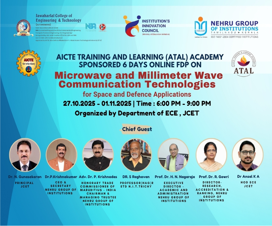 6 days Online FDP on Microwave and Millimeter wave Communication Technologies was organized by ECE Dept sponsored by ATAL.