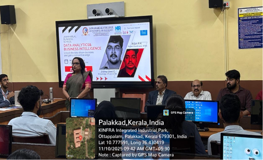 Department of MBA , Jawaharlal College of Engineering and Technology (Autonomous), organized a five-day offline Add-On Course on “Data Analytics & Business Intelligence” for MBA students, in collaboration with the ICT Academy of Kerala (ICTAK).