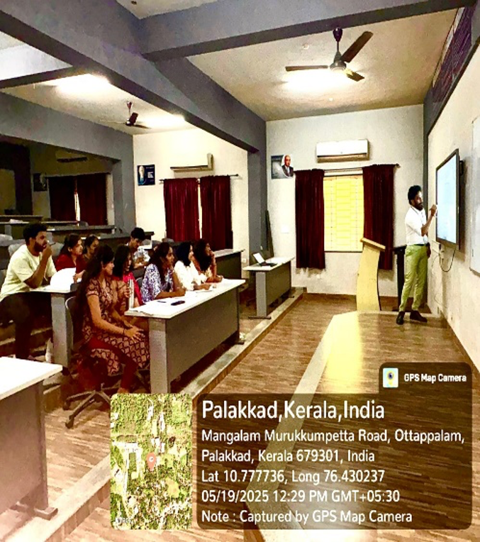 Following the inaugural address, Dr. Kana Sukumaran, Director of Management Studies, delivered a meaningful felicitation, appreciating the department’s initiative and encouraging students to make the most of the opportunity. The ceremony also featured the formal introduction of the expert trainers from ICTAK—Mr. Arjun R. K., Project Coordinator and Trainer, and Mr. Jishnu Unni C., Knowledge Officer and Corporate Trainer—both of whom bring strong academic backgrounds and extensive hands-on experience in Artificial Intelligence, Data Science, and emerging technologies. Their profiles were introduced to familiarize students with the expertise guiding the sessions. The event concluded with a vote of thanks proposed by Mr. Ranjith R., Faculty Coordinator, who expressed gratitude to the management, ICTAK, faculty members, and students for their wholehearted support in making the inaugural ceremony a success. The well-organized inauguration marked a promising beginning to the five-day professional training program